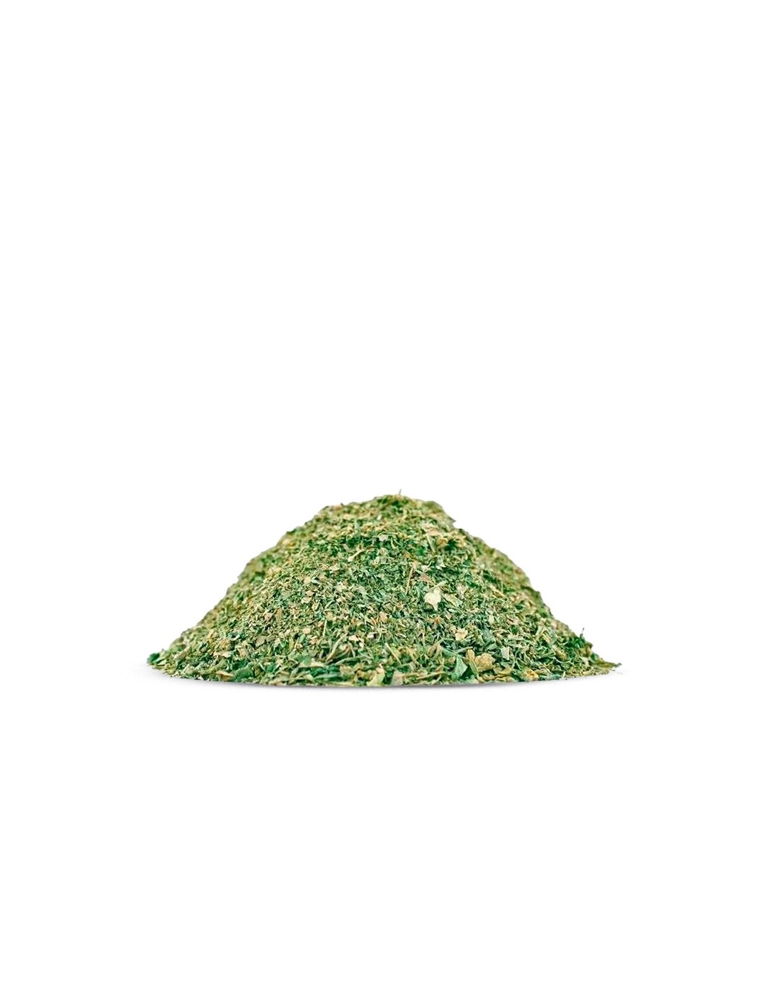 Aspect : Mélange hétérogène de petites feuilles et morceaux de fleurs.