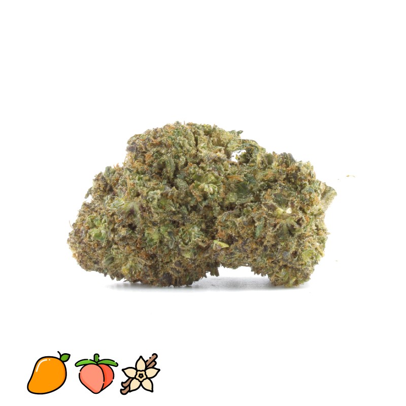 "Voici la Black Domina THCV 20%. Elle vous envoutera de ses somptueux parfums de petite mangue juteuse. Ensuite des notes de mangue charnue s'affirmeront avec intensité et persistance. La Black Domina vous offrira une finale dominée par de succulentes effluves de vanille sucrée. Cette Fleur vous proposera une expérience aromatique unique qu'il serait dommage de manquer."