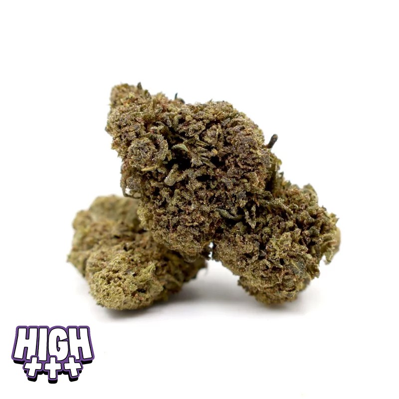 Cultivée en indoor, elle affiche des buds compacts, recouverts de trichomes brillants, avec une apparence résineuse qui témoigne d’une production haut niveau.